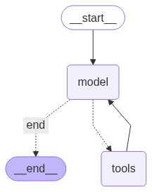 graph.add_conditional_edges("model", router, {"tools": "tools", "end": END})