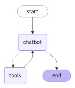 add_conditional_edges("chatbot", tools_condition) 함수는 다음과 같이 실행한다.